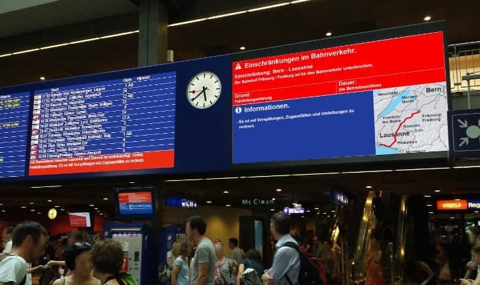 Die SBB rüstet derzeit 16 wichtige Bahnhöfe mit neuen Generalanzeigern aus. Diese beinhalten neben der bekannten Abfahrtsanzeige auch eine neuartige Anzeige für den Störungsfall. Für die Entwicklung dieses Moduls war geOps zuständig.